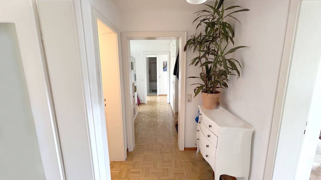 Die Wohnung besteht aus insgesamt 4,5 Zimmern, darunter zwei Schlaf-, einem Wohn- und einem Arbeitszimmer, wobei Wohn- und Arbeitszimmer durch eine Schiebetür verbunden sind und somit eine größere Nutzfläche ermöglicht wird. Die großzügige Wohnfläche bietet genügend Platz für individuelle Gestaltungsmöglichkeiten und persönliche Entfaltung. Die Räumlichkeiten überzeugen durch helle und freundliche Atmosphäre, die zum Wohlfühlen einladen.