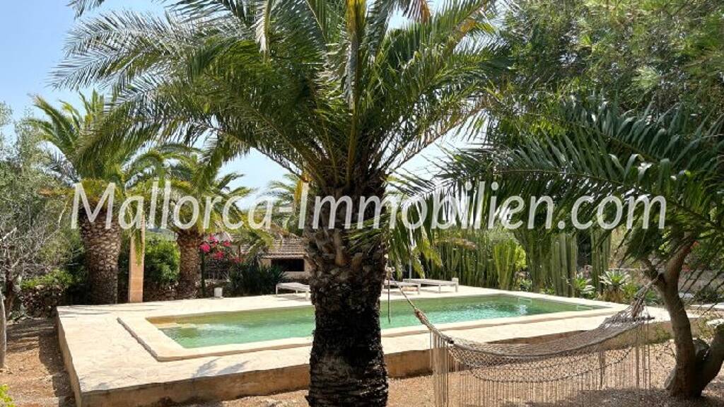 Ohne Zweifel ein spezielles, einzigartiges, teilweise sanierungsbedürftiges Finca-Anwesen. Umgeben von Steinmauern befindet sich auf 17.638 m² Land ein Haupthaus mit 2 Wohnungen. Eine mit 3SZ, 2 Bäder, Wohn-Esszimmer und Küche.