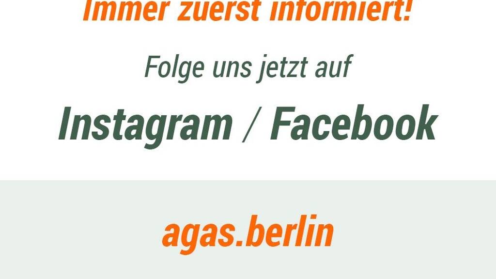 Folge agas.berlin auf instagram oder Facebook und sei immer zuerst informiert!