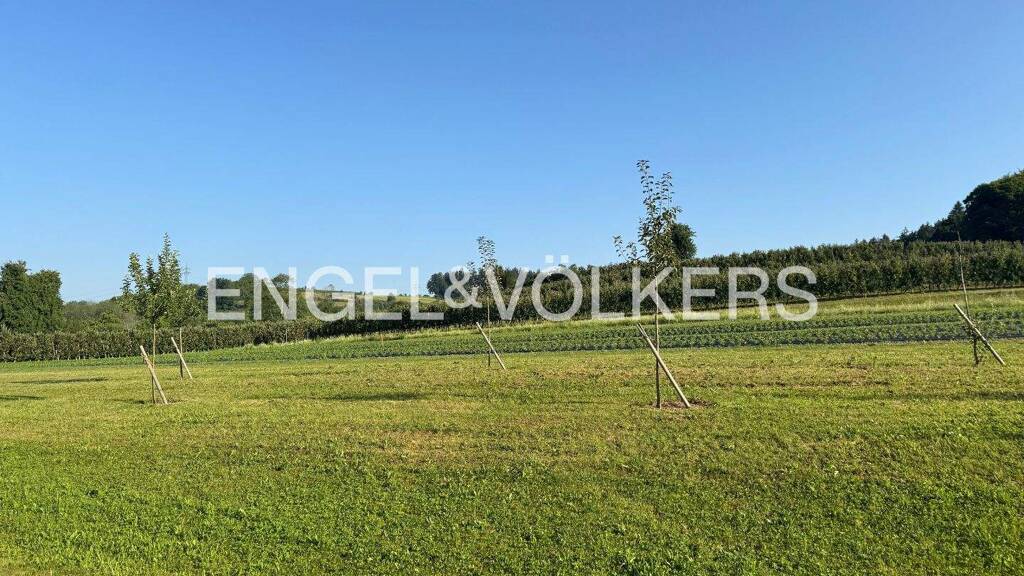 Diese barrierefreie 3-Zimmer-Wohnung mit ca. 130 m² Wohnfläche befindet sich im 1. Obergeschoss eines gepflegten 5-Parteienhauses aus dem Baujahr 2017. Die kleine Eigentümergemeinschaft steht für ein ruhiges und angenehmes Wohnumfeld. In naturnaher Lage mit Blick auf Wiesen, Obstplantagen und die Berge genießen Sie Erholung im Grünen bei gleichzeitig guter Anbindung. Der großzügige Wohn- und Essbereich mit bodentiefen Fenstern und schwellenlosem Fliesenboden in Holzoptik sorgt für helle, offene Räume. Automatisch gesteuerte Jalousien bieten zusätzlichen Komfort. Der nach Süden ausgerichtete Balkon ist mit elektrischer Markise, Sturmsicherung und seitlichem Sichtschutz ausgestattet. Die hochwertige Einbauküche mit Natursteinarbeitsplatte und Miele-Geräten ist im Kaufpreis enthalten. Das barrierefreie Tageslichtbad verfügt über eine ebenerdige Dusche, WC und Bidet; Anschlüsse für eine Badewanne sind vorbereitet. Ergänzt wird das Raumangebot durch ein separates Gäste-WC mit Fenster sowie Einbauschränke. Das ruhig gelegene Schlafzimmer mit Einbauschrank und elektrischen Jalousien sowie ein flexibel nutzbares weiteres Zimmer bieten vielseitige Nutzungsmöglichkeiten. Zur Wohnung gehören eine große Garage mit angrenzendem Werkstattraum (zzgl. 30.000 EUR) sowie ein separater Lagerraum. Besucherparkplätze befinden sich direkt vor dem Haus. Die Wohnanlage ist vollständig barrierefrei gestaltet und verfügt über einen Aufzug bis in die Tiefgarage. Ein Wasch- und Trockenraum ist vorhanden. Die Beheizung erfolgt über Gas in Kombination mit Solarthermie.