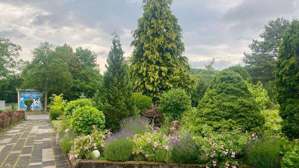 . Großzügiges 745 m² Grundstück mit Weinlaube, Garten, Rasenflächen, Koniferen und Gemüsegarten
