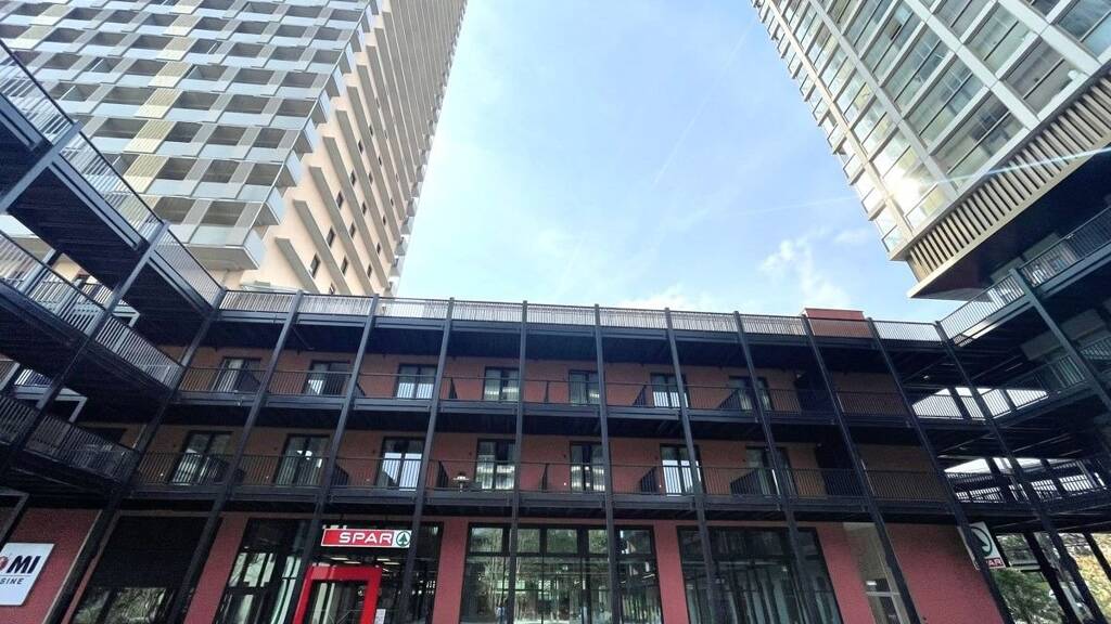 Man profitiert von modernen Geschäftsflächen, einem Supermarkt, einem Co-Working Space, einem Kindergarten, Senior/innen-WGs, Kurzzeit-Wohnungen sowie Kinder- und Jugendspielplätzen innerhalb von "The Marks".