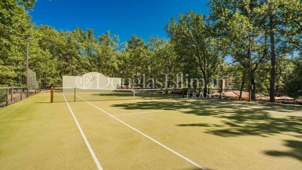 Das Anwesen verfügt über einen großen professionellen Tennisplatz, Ställe und umzäunte Bereiche für Pferde, einen weitläufigen Wald mit Laufstrecken und viele versteckte Orte, die darauf warten, entdeckt zu werden. Der 25 Meter lange Swimmingpool ist von einem bemerkenswerten Unterhaltungsbereich umgeben, der eine überdachte Sommerküche und ein Wohnzimmer mit Steinkamin, einen Essbereich im Freien, eine Bar, eine Holzbadewanne im Freien, eine finnische Steinsauna, eine Terrasse und daneben einen Kinderspielplatz umfasst.