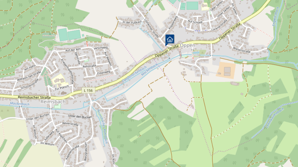 Die Immobilie steht in einer ruhigen Seitenstraße nahe des Ortskern von Oppen, dem direkten Nachbarort von Reimsbach.