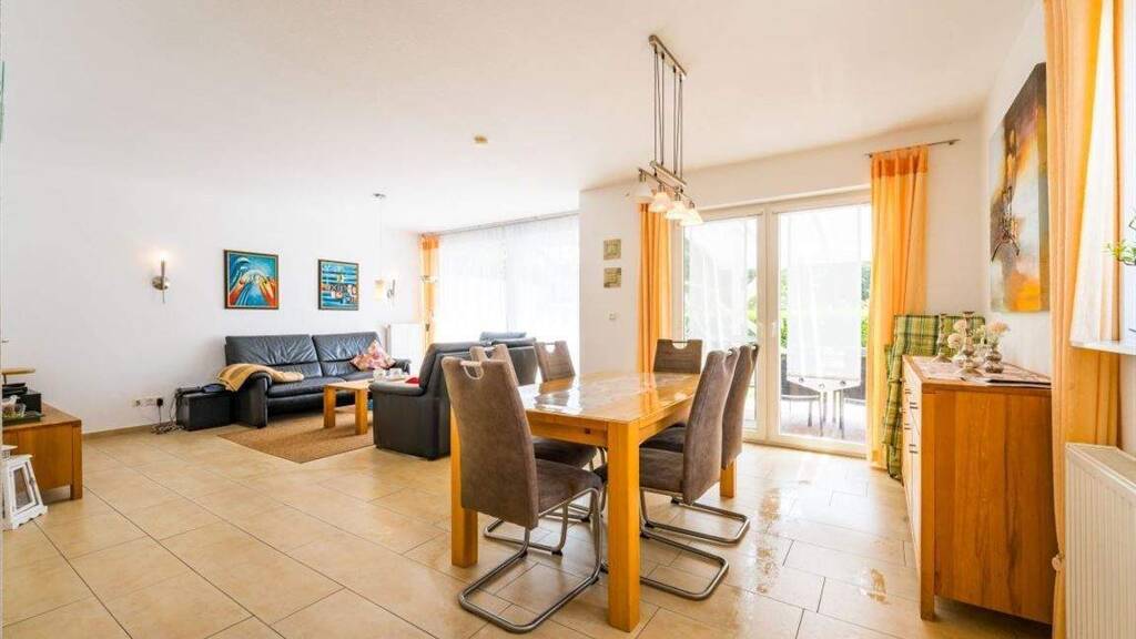 Treten Sie ein und spüren Sie sofort die entspannte Urlaubsatmosphäre dieses liebevoll gestalteten Hauses mit rund 113,24 m² Wohnfläche. Der helle Eingangsbereich, das Herzstück des Hauses, heißt Sie herzlich willkommen und führt direkt in den offenen Wohn- und Essbereich. Große Fenster, helle Böden und eine durchdachte Raumaufteilung schaffen eine freundliche, luftige Atmosphäre - ideal für gemütliche Abende mit einem Glas Wein oder entspannte Lesestunden auf dem Sofa. Die separate, komplett ausgestattete Küche lässt keine Wünsche offen. Ein angrenzender Hauswirtschaftsraum bietet Platz für Waschmaschine, Trockner und Vorräte. Das moderne Gäste-Duschbad im Erdgeschoss sorgt für zusätzlichen Komfort.