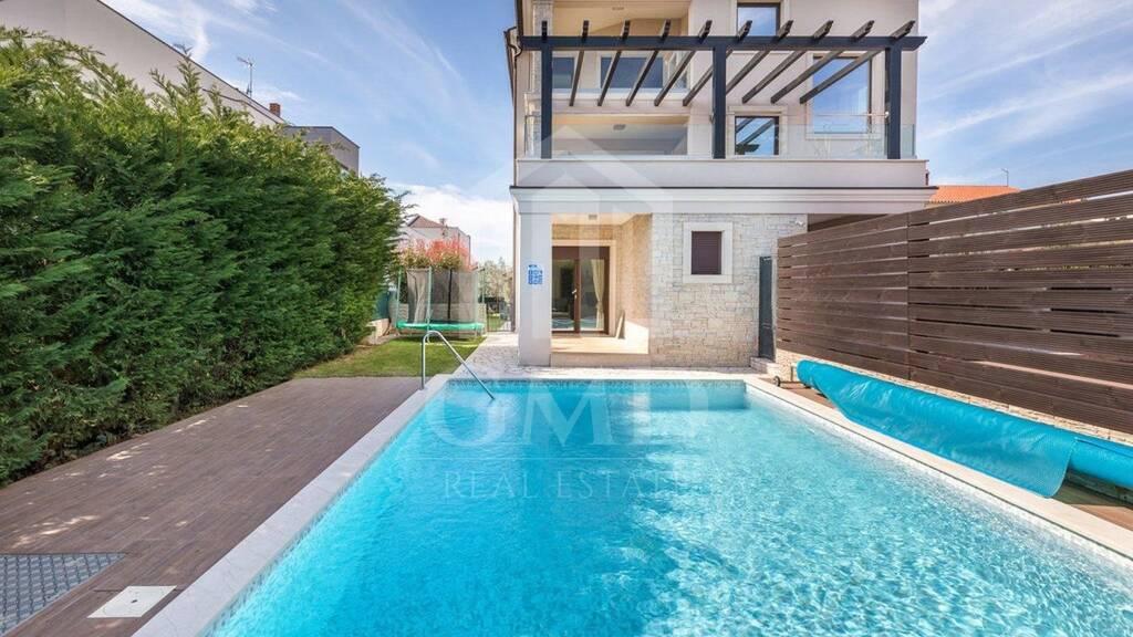 Zum Verkauf steht ein wunderschönes Luxushaus in Fazana, einer malerischen Stadt an der Westküste der Halbinsel Istrien. Dieses exklusive Anwesen bietet einen unglaublichen Blick auf das Meer und den Nationalpark Brijuni und ist somit ein ideales Zuhause für diejenigen, die wunderschöne Natur und Luxus genießen möchten. Dieses Haus wurde aus hochwertigen Materialien gebaut und sorgfältig entworfen, um ein hohes Maß an Komfort und Ästhetik zu bieten. Helle und luftige Räume vermitteln ein Gefühl von Offenheit und Harmonie.Das Haus verfügt über eine große moderne Küche mit modernsten Geräten und Geräten von höchster Qualität, die sich perfekt für die Zubereitung gastronomischer Köstlichkeiten eignet. Der elegante Speisesaal eignet sich ideal für Familienessen oder Treffen mit Freunden. Darüber hinaus verfügt dieses Haus über mehrere geräumige Schlafzimmer mit eigenem Bad, die Privatsphäre und Komfort für alle Familienmitglieder oder Gäste bieten.Der Außenbereich ist ebenso beeindruckend wie der Innenbereich. Der private Pool bietet Erfrischung in den warmen Sommermonaten, während der Essbereich im Freien perfekt mit dem luxuriösen Ambiente harmoniert. Der Pool ist 32 m2 groß und daneben befindet sich ein Sonnendeck. Die Anlage ist durch eine Videoüberwachung geschützt, die über eine Gegensprechanlage gesteuert wird.Das Haus liegt in einem ruhigen und exklusiven Teil von Fazana und bietet Privatsphäre und das Gefühl, der Hektik der Stadt entfliehen zu können. In unmittelbarer Nähe befinden sich jedoch alle notwendigen Einrichtungen wie Restaurants, Geschäfte und Strände.ERDGESCHOSS: