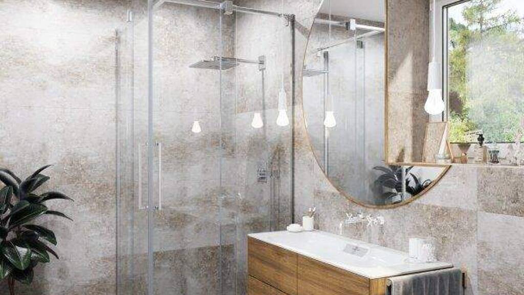 * Eichenparkett und großformatige Fliesen von Marazzi schaffen ein elegantes und pflegeleichtes Ambiente
