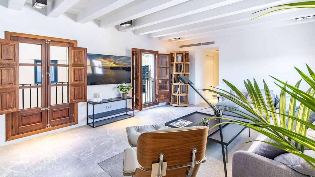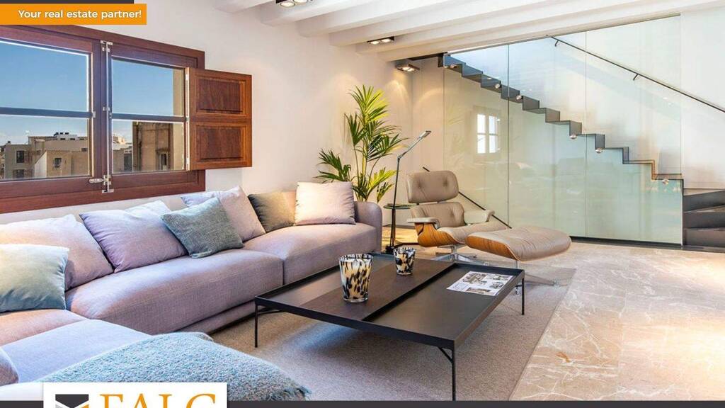In einer charmanten Strasse in der Altstadt von Palma gelegen, verbindet dieses exklusive Triplex historischen Charme mit maximalem modernen Komfort. Die Wohnung befindet sich in einem Gebäude aus dem 20. Jahrhundert, das im Jahr 2022 komplett renoviert wurde, und bietet eine bebaute Fläche von ca. 177 m2 (ca. 152 m2 Wohnfläche), die sich auf 3 Ebenen verteilt. Der erste Stock verfügt über eine voll ausgestattete Miele-Küche, eine Waschküche, ein Esszimmer und zwei Schlafzimmer mit eigenem Bad. Auf der ersten Etage befindet sich ein geräumiges, lichtdurchflutetes Wohnzimmer, das über eine Innentreppe in die 3. Etage führt, wo sich eine spektakuläre private Terrasse von 37 m2 mit Outdoor-Küche und Grill befindet, ideal um den mediterranen Lebensstil zu geniessen. Die Immobilie zeichnet sich durch eine hochwertige Ausstattung aus, mit Böden aus Iroko-Holz und Naturstein, Fussbodenheizung, Klimaanlage und doppelt verglasten Fenstern. Ein Aufzug verbindet die ersten beiden Etagen und sorgt für noch mehr Komfort. Es besteht auch die Möglichkeit, gegen Aufpreis einen Garagenplatz zu erwerben. Eine einzigartige Immobilie für alle, die Eleganz und Exklusivität im Herzen von Palma suchen. Das historische Zentrum von Palma ist ein architektonisches und kulturelles Wunderwerk. Mit seinem mittelalterlichen Grundriss ist es eine der größten und am besten erhaltenen Altstädte im Mittelmeerraum und in Europa.