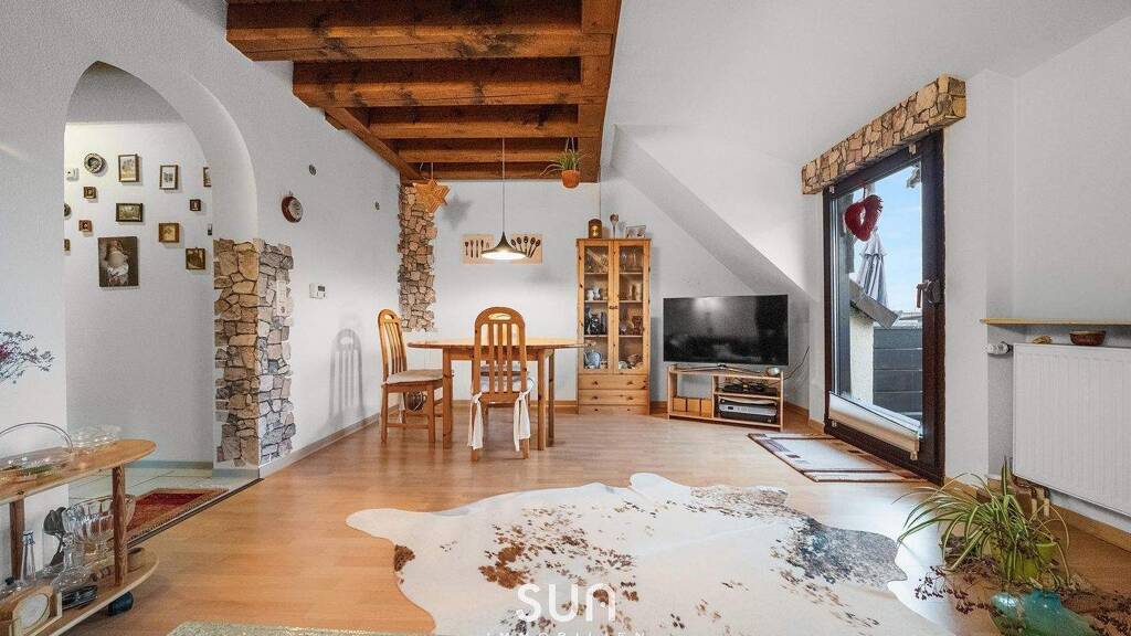 Auf zwei Ebenen erstreckt sich diese charmante Maisonette-Wohnung mit ca. 74 m² Wohnfläche. Drei lichtdurchflutete Zimmer laden dazu ein, gemütliche Abende zu verbringen, kreativ zu arbeiten oder einfach den Blick ins Freie zu genießen. Zwei stilvolle Badezimmer machen den Alltag entspannt und komfortabel, während die moderne Einbauküche zum gemeinsamen Kochen, Backen oder zu genussvollen Frühstücksmomenten einlädt.