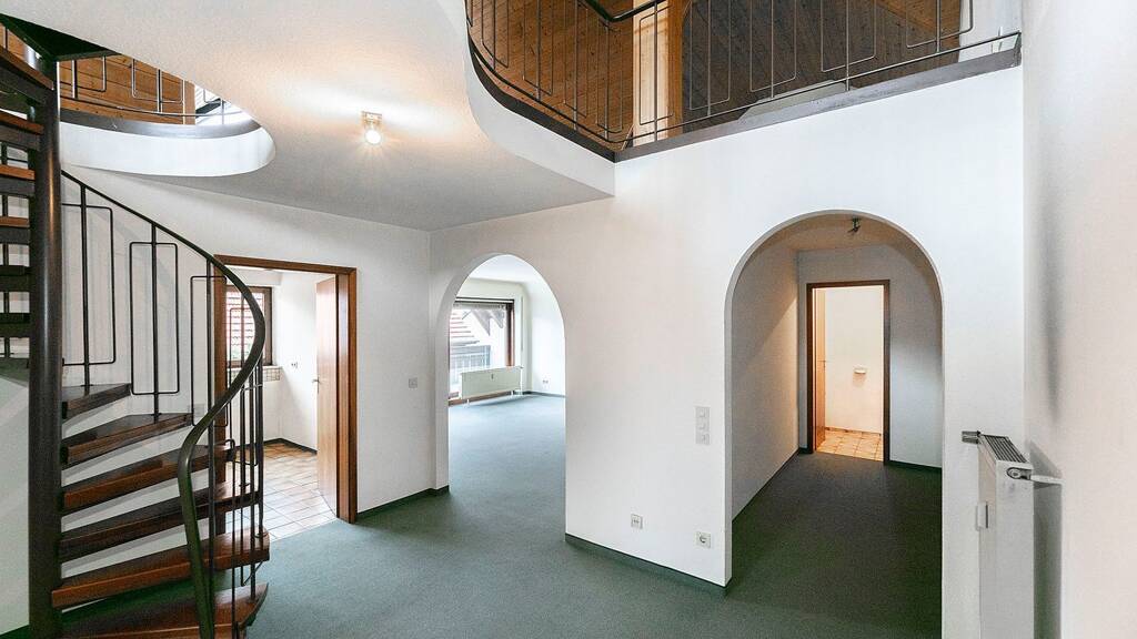 Die Wohnung ist vollständig geräumt. Die beiden Schlafzimmer (Schlafen und Kind) verfügbaren jeweils über praktische "Drempel", die viel Stauraum bieten. Über den Wohn-/Essbereich gelangen Sie auf den herrlichen und großen Süd-Balkon. Die schöne Wendeltreppe verbindet den Flur mit der attraktiven Wohngalerie im Dachgeschoss. Aufgrund der Größe und Fensterverteilung könnten hier auch zwei Zimmer eingerichtet werden.