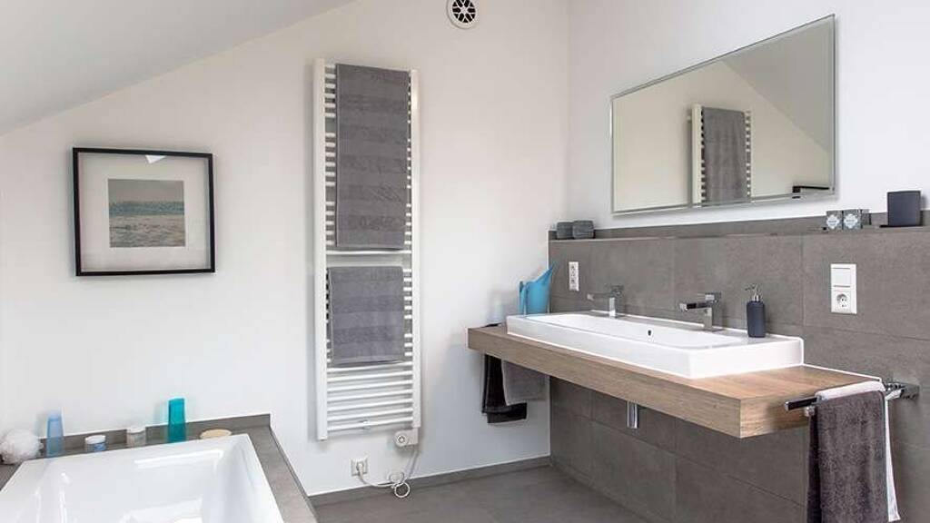 - Satteldach mit selbstreinigender Ziegeleindeckung, sturmverklammert - Dachrinnen und Fallrohre aus Titanzink - Dreifach-verglaste Wärmeschutzfenster - Außenfensterbänke aus Aluminium - Rollläden aus Aluminium - Haustür mit Edelstahlgriff und Mehrfachsicherheitsverriegelung - Freiraumupgrade auf 2,75 m Deckenhöhe im Standard - Mineralischer Struktur-Außenputz in weiß - Bodenplatte (Keller optional) inkl. Bodengutachten - Installation Luft-Wasser-Wärmepumpe mit Fußbodenheizung - Material + Montage - Elektroinstallation - Material + Montage - Photovoltaikanlage - Material + Montage - Sanitärrohinstallation - Material + Montage - Installation Be- und Entlüftungsanlage - Material + Montage - Buchenholztreppe - Material + Montage - Trockenbau (Dämmung + Beplankung) - Material
