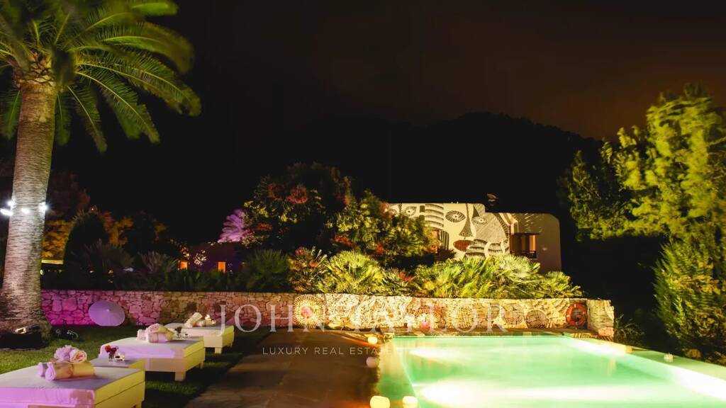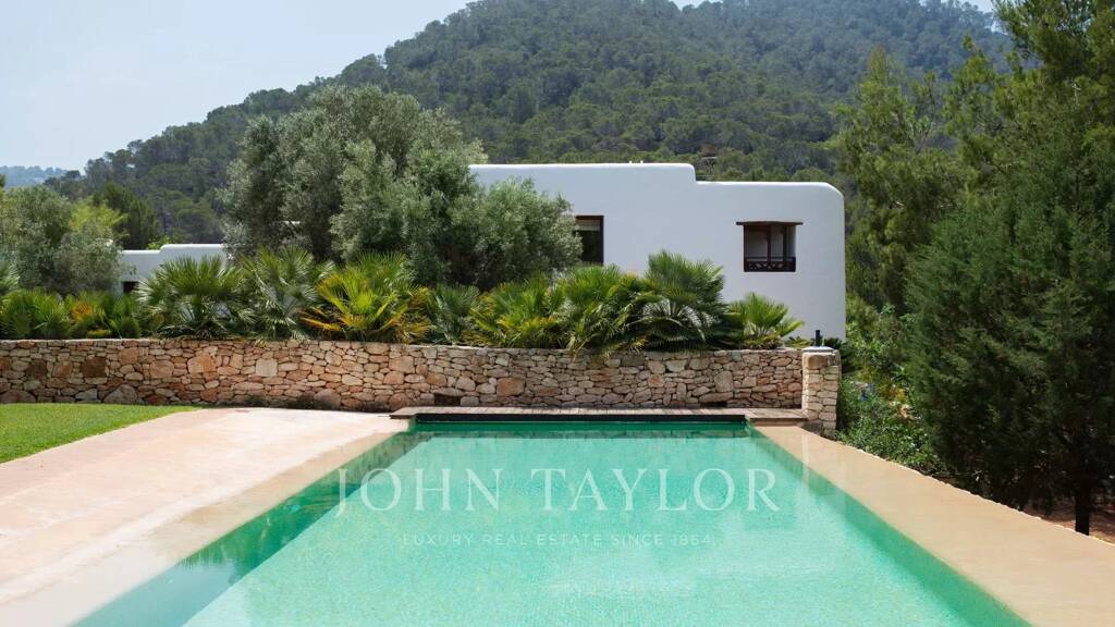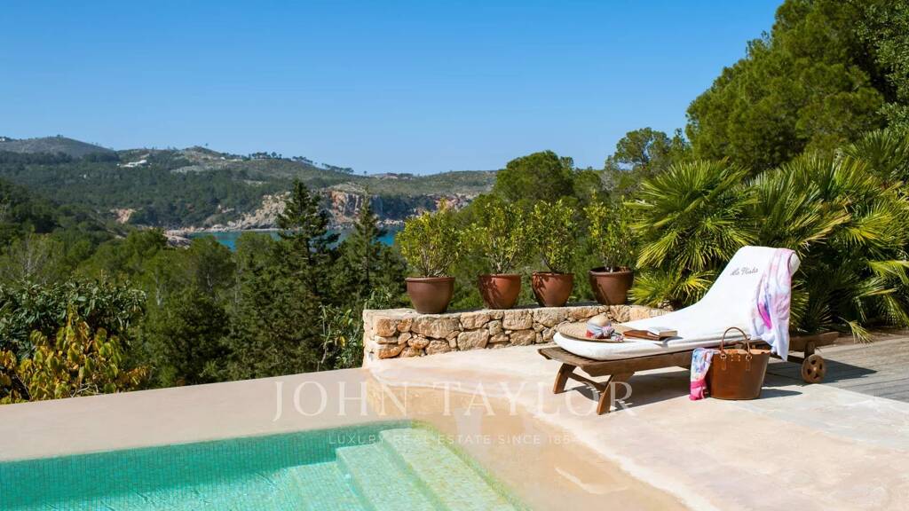 Ibicencan villa surrounded by pine forests in the north of the island, with breathtaking views across the Med, and boasting a gorgeous infinity pool, direct access to the beach and a multitude of courtyards, gardens and chillout areas offering space and privacy.