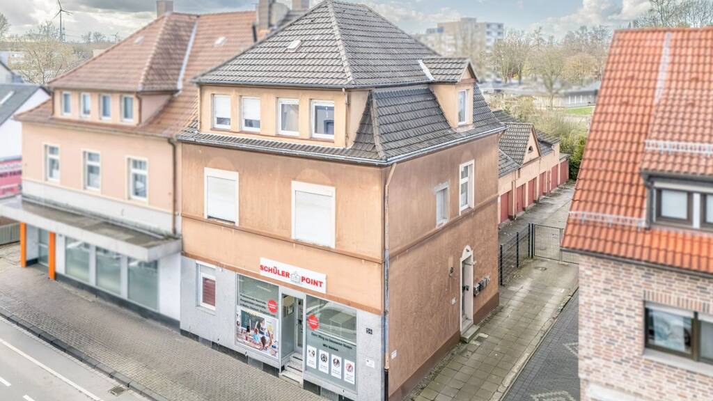 Zum Verkauf steht ein gepflegtes Wohn- und Geschäftshaus mit solider Bestandsstruktur und langfristig gesicherter Vermietung. Die Immobilie umfasst rund 260m² vermietbare Fläche und verteilt sich auf eine Gewerbeeinheit im Erdgeschoss, zwei Wohnungen in den Obergeschossen, sowie eine weitere Wohneinheit im rückwärtigen Anbau. Zusätzlich bietet das Dachgeschoss weiteres Ausbaupotenzial.