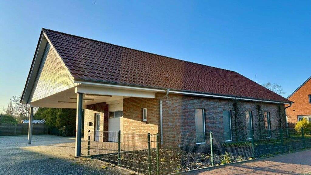 Die Gewerbehalle befindet sich in Detern, direkt an der Hauptstraße der Ortsdurchfahrt. Diese zentrale Lage bietet eine hervorragende Sichtbarkeit und eine gute Erreichbarkeit für Kunden, Lieferanten und Mitarbeiter. Die Nähe zur Hauptverkehrsstraße sorgt für eine optimale Anbindung an die umliegenden Ortschaften und überregionale Verkehrswege.