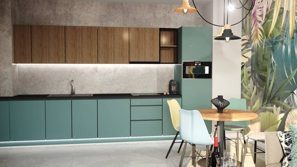 Die Wohnung verfügt über ein geräumiges Wohnzimmer mit Essbereich, moderne Küche, ein komfortable Schlafzimmer und Badezimmer.