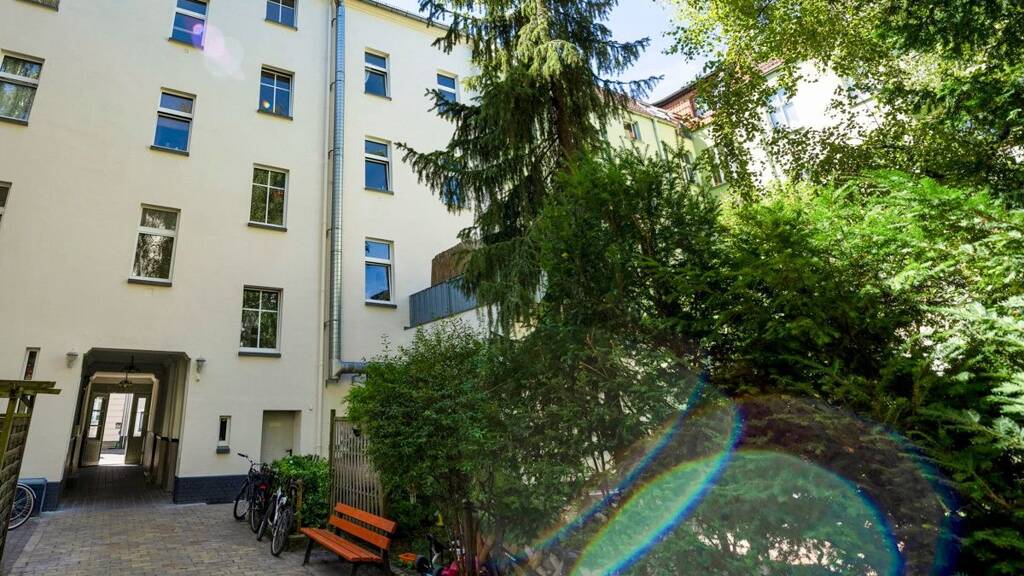 Historische Treppengeländer, dezente Ornamente und viel Charme zeichnen diesen Altbau aus. Er besteht aus einem straßenseitigen Vorderhaus und dem separaten Hinterhaus. Dazwischen sorgt der ruhige Gartenhof für eine angenehme Privatsphäre. Der schön gestaltete Hof verfügt über einen Fahrradstellplatz, immergrüne Gehölze und Sitzbänke. Der Altbau wurde in den 1990er Jahren modernisiert und das Dachgeschoss zu Wohnzwecken ausgebaut. Die sehr gut vermieteten 2-,3- und 5-Zimmer-Wohnungen erstrecken sich über ca. 45 m² bis 150 m² und verfügen teilweise über Balkone. Große Fenster sorgen für ein helles Wohnambiente.