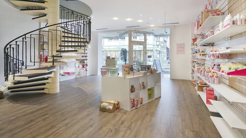 - Bodentiefe Schaufensterfläche - Barrierearmer Zugang in die Verkaufsfläche; ebenerdiger Hintereingang - Abgetrennte Büro-/Lagerfläche hinter der Verkaufsfläche - Wendeltreppe ins Obergeschoss - Büro mit großem Panoramafenster im OG - Teeküche / Technikraum - Personal-WC mit Durchlauferhitzer - Teppichbelag in der Verkaufsfläche und im Büro - Auf Wunsch können einige Regale übernommen werden