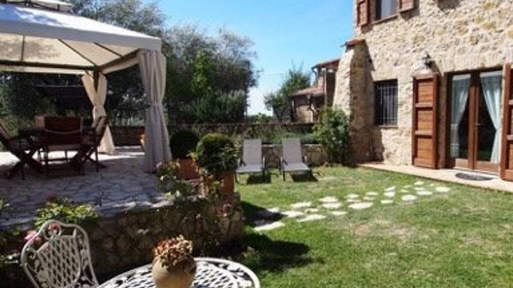 Die Wohnung in dieser Auflistung hat eine Wohnläche von ca. 150 qm. Sie hat seinen eigenen Eingang vom privaten Garten und ist zweistöckig: im Erdgeschoss befindet man Küche, Esszimmer mit Kamin (derzeit im Inneren befindet sich ein Pelletofen), Schlafzimmer, Bad mit Sauna-Duschkabine aus Travertin und Keller mit Waschküche; eine elegante Ziegeltreppe führt in die obere Etage, wo ein schönes "spa-Bad" mit Jacuzzi, zwei Schlafzimmer und ein Balkon von ca. 9 qm sind. Das Haus wurde liebevoll von den Besitzern restauriert und bewahrt den ursprünglichen Charakter des Gebäudes mit Steinen für die Struktur, Kastanienholz für Balken und Dachbalken und die typischen Terrakottadachziegel. Darüber hinaus wurden in der Renovierung wertvolle Materialien wie Viterbos Terrakotta, Marmor für Badezimmer, gebleichtes Hartholz Parkett in den Schlafzimmern, Teak im Master-Bad mit Whirlpool verwendet. Alle Fenster sind aus massiver Eiche mit bruchsicherem Glas, und im Erdgeschoss hat jedes Fenster ein Gitter aus Schmiedeeisen. Das Anwesen verfügt über zwei Parkplätze und einen Garten von ca. 600 qm mit kleinem Innenhof für die Privatsphäre und die Entspannung der Eigentümer. Der Garten ist sehr gepflegt mit Sträuchern, Oliven und Obstbäumen, und hat eine charmante Aluminium-Pavillon mit Zelten und Moskitonetzen an den Seiten und Grill im Inneren. Vorbereitet für ein Hydromassage-Schwimmbad.