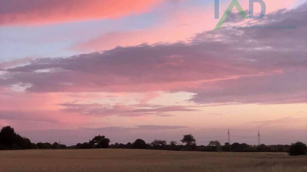 Es ist mit einer gut ausgestatteten Gartenlaube und einer Doppelgarage bebaut. Die Doppelgarage kann bei Bedarf abgerissen werden, um die Fläche anderweitig zu nutzen. Dieses Baugrundstück bietet Familien die Möglichkeit, ihr Traumhaus nach eigenen Vorstellungen zu verwirklichen, in einer gut angebundenen und familienfreundlichen Umgebung.