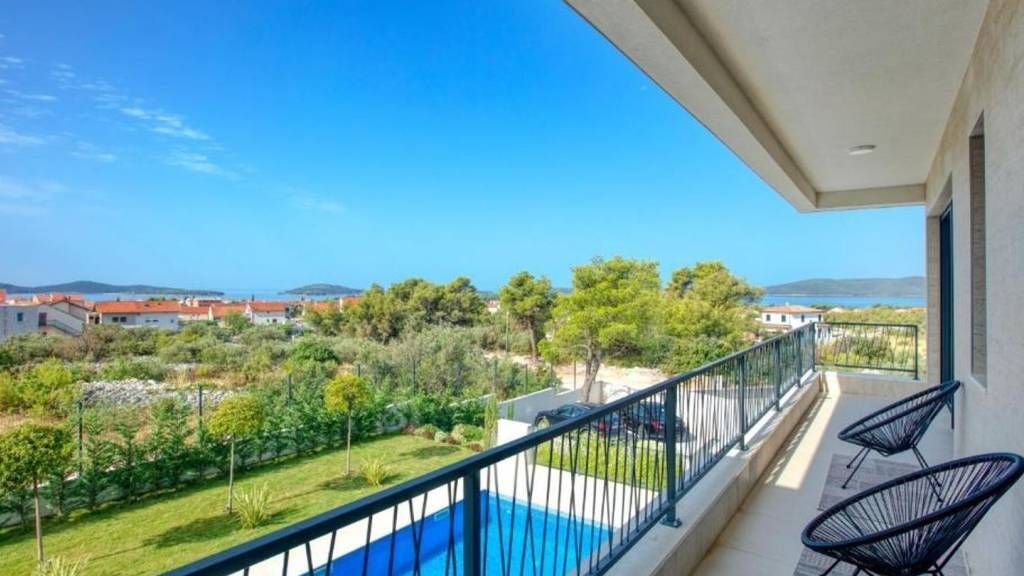 Wir vermitteln den Verkauf dieser erstaunlichen neu gebauten Villa, die sich in ruhiger Lage in der Nähe von Sibenik befindet. Von der Vorderseite der Villa hat man einen freien Blick auf das Meer, das nur 500 Meter zu Fuß entfernt ist, während es von der Rückseite von einem Pinienwald umgeben ist. Diese Villa besteht aus Erdgeschoss und Obergeschoss. Das Erdgeschoss umfasst ein Wohnzimmer, eine offene Küche mit Esszimmer, ein Heimkino, einen Fitnessraum und ein Badezimmer. Das Esszimmer führt durch die Glaswände zur überdachten Außenterrasse mit elektrischem Grill und Platz zum Essen im Freien. Im ersten Stock befinden sich zwei geräumige Schlafzimmern und zwei Kinderzimmern. Jedes der Zimmer hat ein eigenes Bad und Zugang zum Balkon mit wunderschönem Meerblick. Vor der Villa befindet sich ein Swimmingpool mit Liegewiese und Außendusche, der ideale Ort, um die Sonne zu genießen und sich mit Freunden zu treffen. Der Hof ist gut gepflegt und der Garten ist mit Palmen und mediterranen Pflanzen bepflanzt, die Schatten und Privatsphäre bieten. Das Anwesen verfügt auch über drei Parkplätze. Diese Villa wurde mit hochwertigen Materialien gebaut, einschließlich moderner Technologie (Alarmanlage, Fußbodenheizung, Klimaanlage), während das Innere mit modernen Möbeln eingerichtet ist.