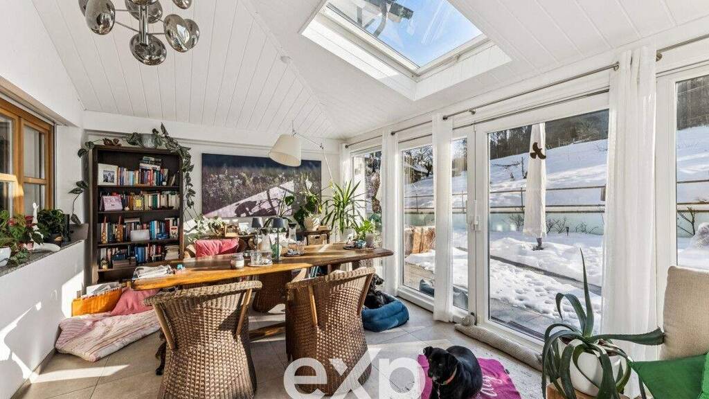 Das Herzstück des Hauses ist das lichtdurchflutete Erdgeschoss: Vom gemütlichen Wohnzimmer gleiten Sie direkt in den beheizten Wintergarten. Hier genießen Sie dank Fußbodenheizung das ganze Jahr über den Blick in Ihr grünes Paradies. Die nagelneue Bosch-Markenküche (2024) lädt zu kulinarischen Abenden ein, während der Wamsler-Ofen im Esszimmer für behagliche Wärme sorgt. Ein echtes Wellness-Highlight: Das neue Badezimmer mit Regendusche und hygienischem Dusch-WC bietet einen direkten Gartenzugang - perfekt für die Abkühlung nach einem Saunagang.