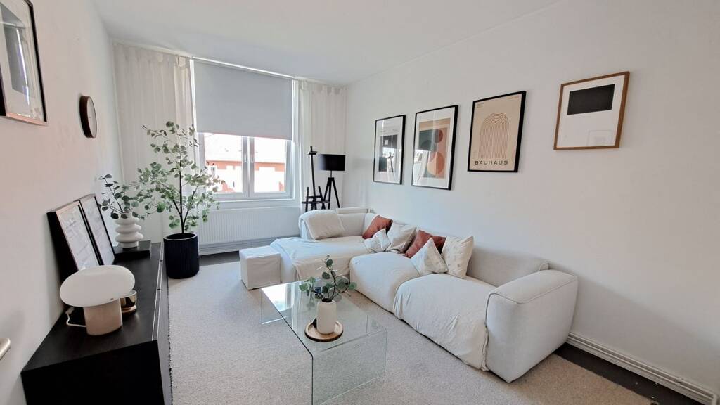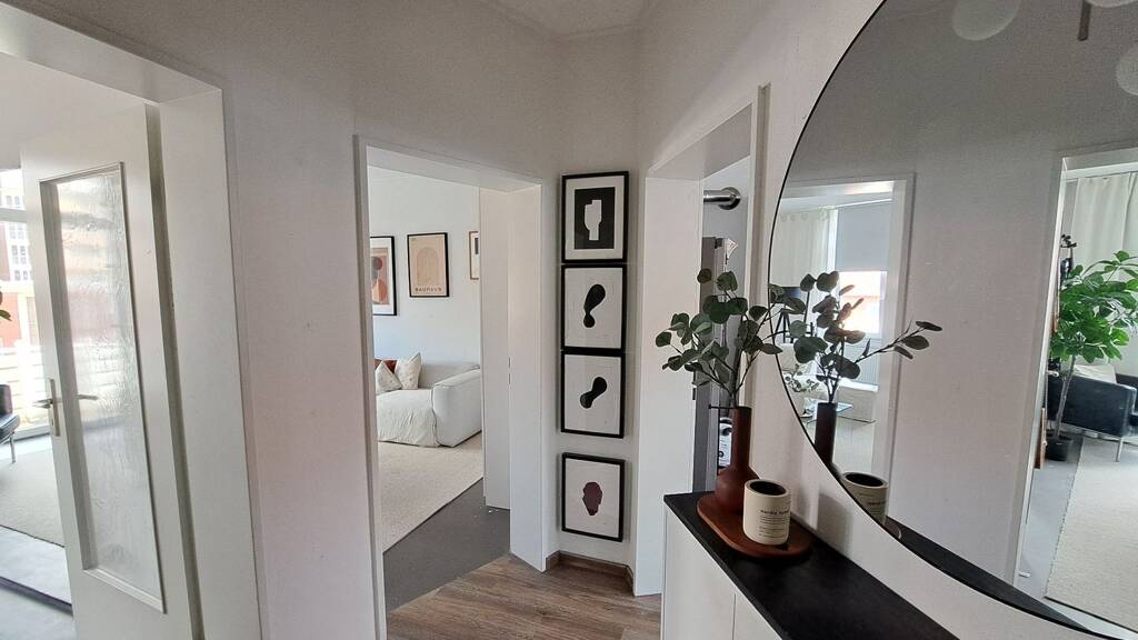 Diese modernisierte 2-Zimmer-Wohnung ist ausgestattet mit einem Duschbad mit Fenster und einer großen Küche. Vom Wohnzimmer aus erreichen Sie den gemütlichen Balkon. Der Fußboden im Flur und in der Küche ist mit einem modernen Design-Bodenbelag versehen.