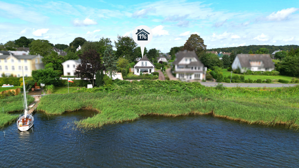 Juwel an der Schlei: EFH mit großer Glasfront und Balkon mit Wasserblick + Nebenhaus in Boren