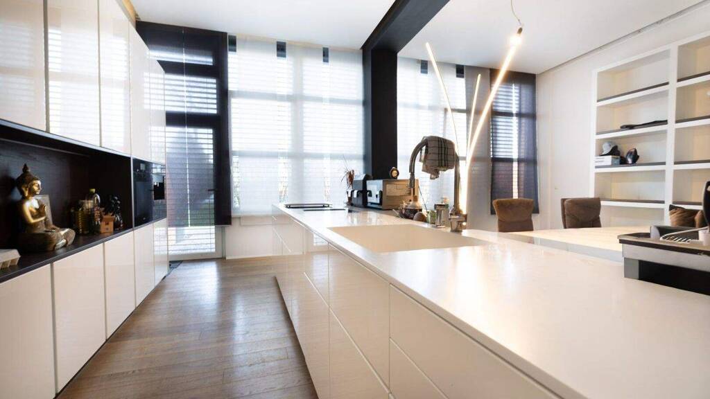 Willkommen in einer Wohnung, die Offenheit, Licht und architektonische Besonderheit auf eindrucksvolle Weise vereint. Auf rund 208 m² Wohnfläche, verteilt auf zwei Ebenen, verbindet dieses Zuhause stilvolle Wohnqualität mit außergewöhnlicher Raumwirkung, hochwertiger Ausstattung und einem privaten Rückzugsort, der den Alltag spürbar veredelt.