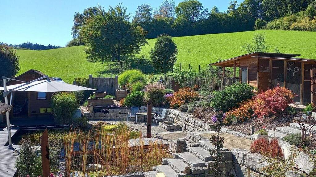 Im liebevoll gestalteten Garten findet jedes Familienmitglied seinen eigenen Lieblingsplatz und Rückzugort. Es gibt überall etwas zu entdecken, ein Highlight für Gartenliebhaber. Nicht zuletzt gehört auch eine Baumwiese und ein gut geschützter Grillplatz, wo man herrliche Grillabende mit seinen Liebsten verbringen kann.