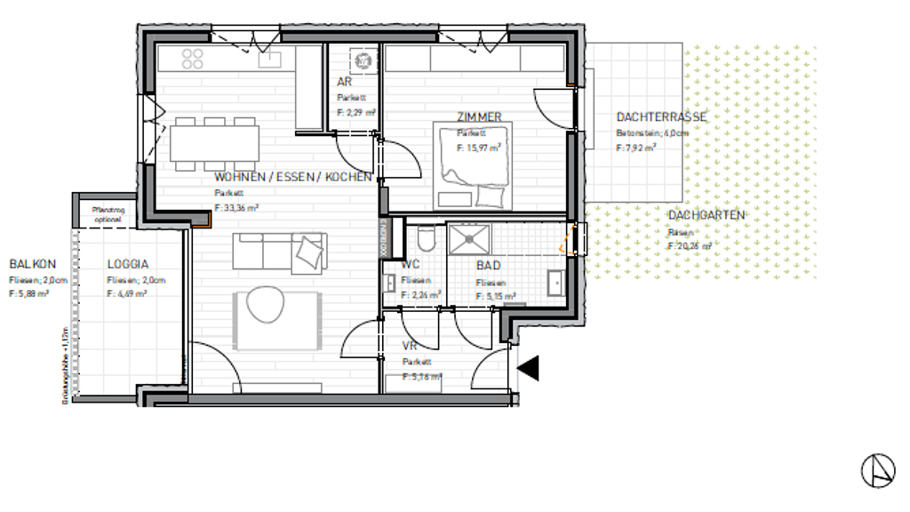 2 Zimmer • 64,2 m² • 1. Geschoss
