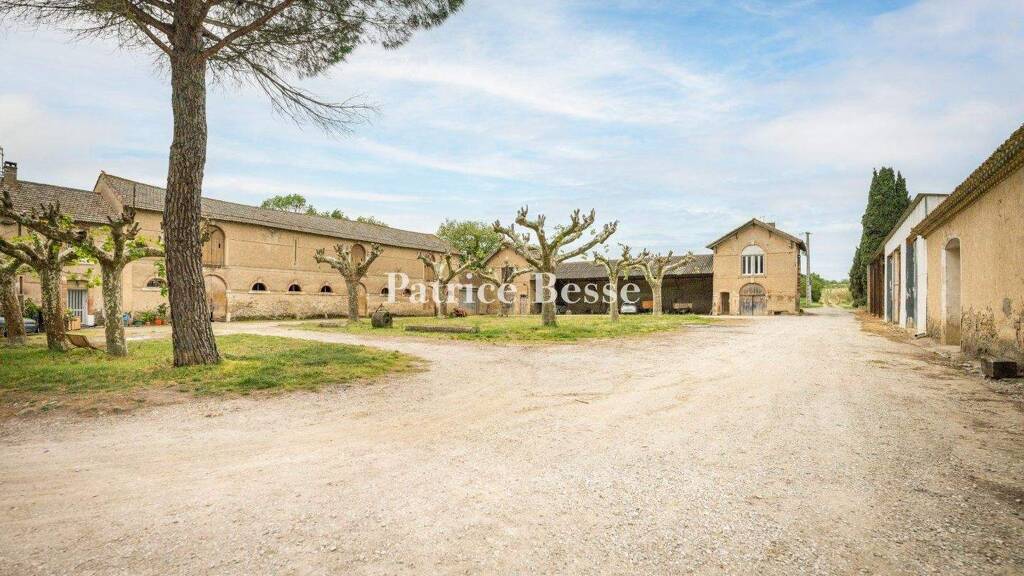 A large wrought iron gate opens onto an extensive oval-shaped lawn, encircled by two driveways leading to the main house. The property also includes outbuildings, some of which are directly connected to the main dwelling. Forming a U-shape, they but onto each other and house seven lodgings. The driveway that runs alongside the house on the left leads to a lawned courtyard lined with plane trees, bordered by the various buildings erected for wine production: a winery, a caretaker's cottage, a stable and a shed, among others. The house, the adjoining buildings and the grounds cover an area of 2.24 hectares.
