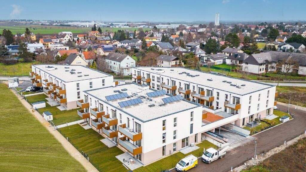 Bezugsfertiges Wohnbauprojekt mit 80 Eigentums- und Vorsorgewohnungen auf Eigengrund mit Garten, Terrasse oder Balkon. In Gerasdorf, am Rande des 21. Bezirks in Wien, entstehen 80 provisionsfreie Eigentumswohnungen. Die Größen liegen zwischen 41 m² und 69 m² und umfassen 2 bzw. 3 Zimmer. Alle Einheiten verfügen über private Freiflächen wie Garten, Terrasse oder Balkon.