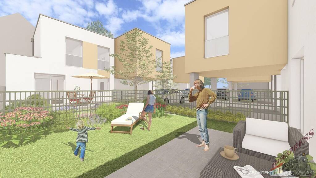 - Eigengrund je Einheit ca. 150 m² bis 228 m² und Allgemeinfläche ca. 85 m² (Zufahrt zu den Häusern)
