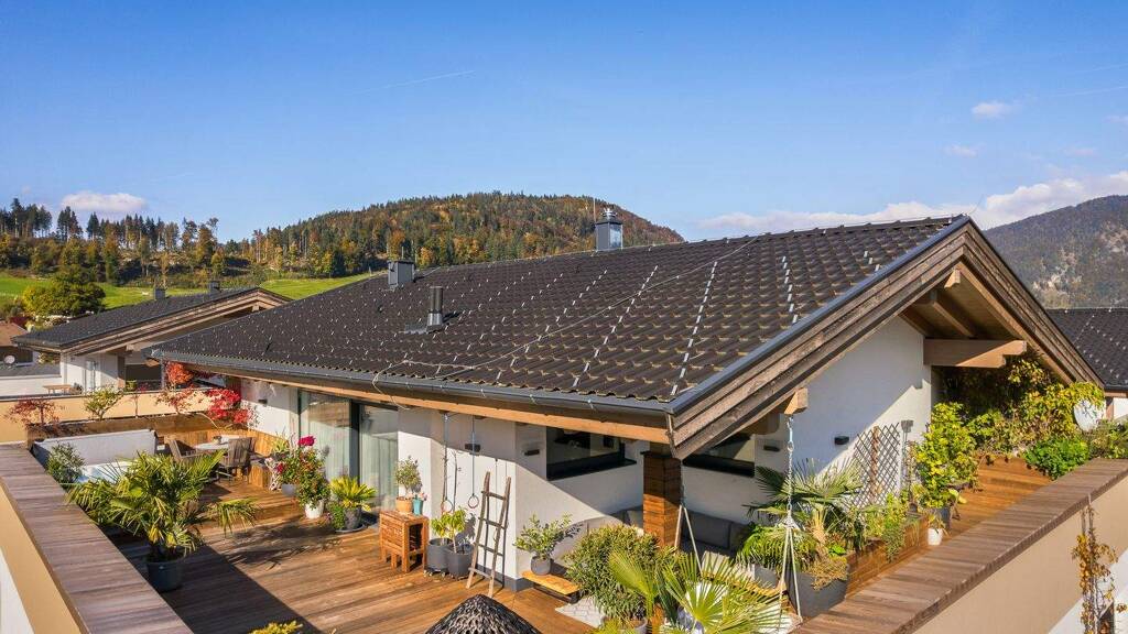 - traumhafte Aussicht in die umliegende Bergwelt - hochwertige Ausstattung (Eichendielen, Vollholztüren, ...) - Balkon im Obergeschoss - großzügige Sonnenterrasse im Dachgeschoss - Einbauküche mit Miele Geräten - Weinkühlschrank - Bora Umluftsystem - Quooker - Kamin - Sichtdachstuhl - edle Badausstattung - Fliegengitter - tlw. Raffstores - Whirlpool - Personenaufzug - Dachboden - 2 Tiefgaragenplätze - uvm.