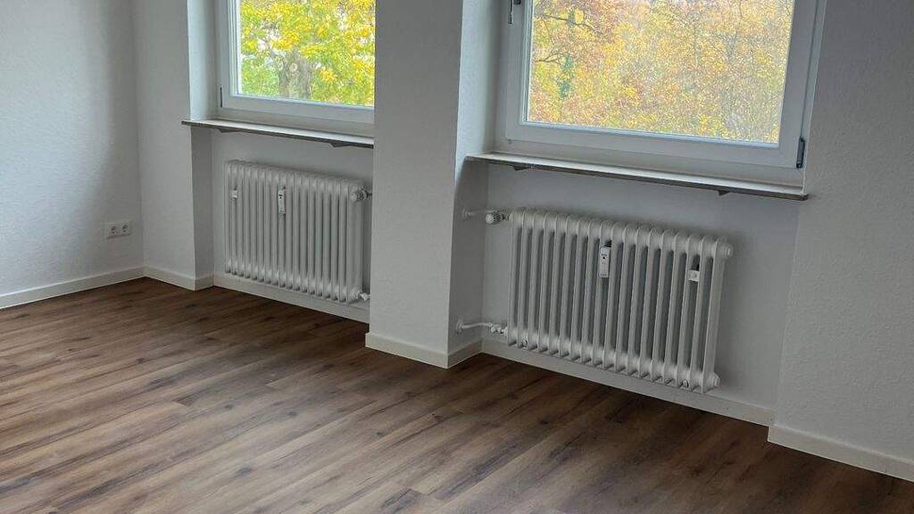 Neu renoviert mit folgender Ausstattung: PVC Designbelag in Eicheoptik in den Wohnräumen und im Flur Neues Bad mit Handtuchheizkörper Großer einladender Balkon Kleiner Wandschrank im Flur dient als zusätzliche Staufläche