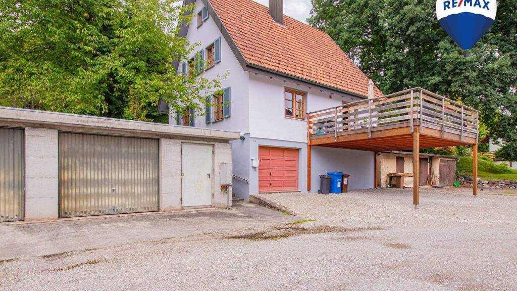 Für zusätzlichen Komfort sorgen ein Carport, drei Außenstellplätze sowie zwei weitere Garagen. Ein Schuppen bietet Stauraum für Gartengeräte, Fahrräder oder sonstiges.