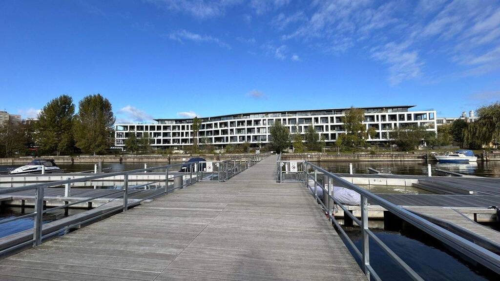 Das Gebäude verfügt über einen Keller mit Tiefgaragenstellplätzen sowie einen extra Abstellraum für SUPs, Kanus oder Ähnliches. Zudem gibt es praktische Fahrradabstellmöglichkeiten. Die gepflegte Grünfläche vor dem Haus fügt sich harmonisch in die Umgebung ein, während die direkte Lage am Wasser ein besonderes Wohlfühlambiente schafft. Ein besonderes Highlight ist der eigene Bootssteg direkt vor dem Gebäude, an dem Liegeplätze bei Bedarf separat angemietet werden können - ideal für Wassersportler und Bootsliebhaber. Die Kombination aus urbanem Komfort und der Nähe zur Natur bietet ein einzigartiges Lebensgefühl für all jene, die das Leben am Wasser schätzen.