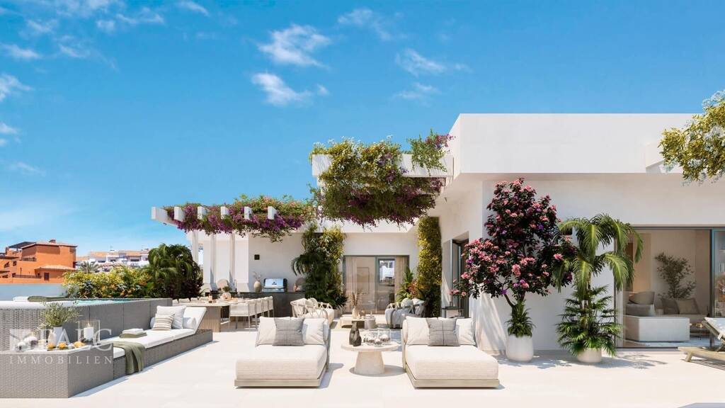 Die Residenz beeindruckt durch ihre offene und lichtdurchflutete Gestaltung. Der elegante Wohn-Essbereich mit 30 Quadratmetern und integrierter Designerküche bildet das Herzstück der Wohnung. Der Hauptschlafbereich mit fast 15 Quadratmetern bietet ein eigenes Bad en Suite, während zwei weitere komfortable Schlafzimmer mit jeweils über 11 Quadratmetern und ein zusätzliches Badezimmer den Wohnkomfort komplettieren. Ein praktischer Hauswirtschaftsraum ergänzt die durchdachte Raumaufteilung. Die beiden großzügigen Terrassen erweitern den Wohnraum nach außen und bieten mit 39 und 72 Quadratmetern ideale Bereiche zum Entspannen und Entertainen.