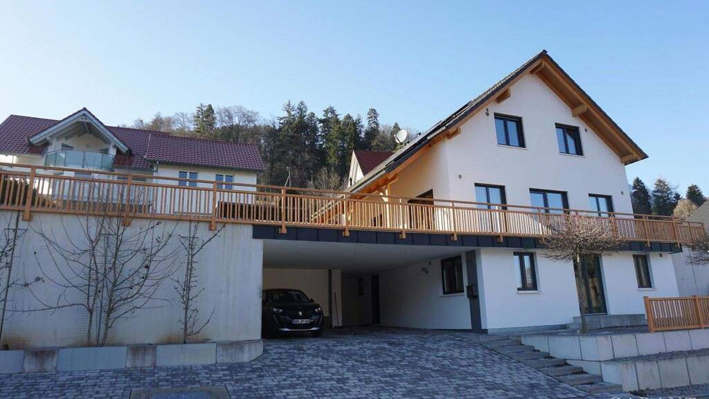 In attraktiver und familienfreundlicher Lage sucht dieses Wohnhaus einen neuen Eigentümer. Das im Jahr 2016 erbaute Fertighaus überzeugt durch seine zeitgemäße Bauweise, eine klare architektonische Linie sowie eine hochwertige und energieeffiziente Ausstattung. Hier vereinen sich Komfort und Modernes wohnen. Über eine geflieste Treppe gelangen Sie in das Erdgeschoss. Der offen gestaltete Küche-/Ess-/Wohnbereich bildet das Zentrum des Familienlebens. Große Fensterflächen sorgen für eine helle, freundliche Atmosphäre und schaffen eine harmonische Verbindung zur Terrasse und Garten, welcher mit einer Zaunanlage aus Aluminium in Holzoptik eingefasst ist. Die moderne Küche bietet viel Platz für kulinarische Kreativität. Direkt angrenzend befindet sich eine praktische Speisekammer. Der großzügige Wohnbereich lädt zu gemeinsamen Abenden mit der Familie ein. Ein Duschbad, sowie ein Gästezimmer ergänzen diese Ebene und bieten flexible Nutzungsmöglichkeiten, beispielsweise als Büro oder Gästezimmer. Über eine stilvolle, modern gestaltete Holztreppe mit Metallelementen erreichen Sie das Dachgeschoss. Hier erwarten Sie: Zwei geräumige Zimmer ideal als Kinder-, Arbeits- oder Gästezimmer, ein großzügiges Schlafzimmer, ein modernes Bad mit hochwertiger Ausstattung. Diese Ebene bietet ausreichend Raum für Ihre Privatsphäre.