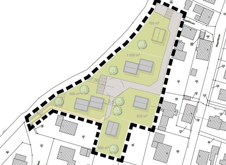 Art und Maß der baulichen Nutzung: GFZ: 0,5 GRZ: 0,4 WA = Allgemeines Wohngebiet offene Bauweise nur Einzelhäuser zulässig (WA2) nur Einzel- oder Doppelhäuser zulässig (WA1) bis zu 4 Wohnungen in einem Doppelhaus möglich!!!