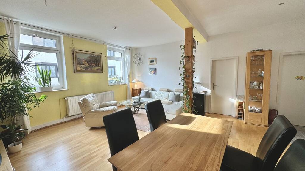 Mit einer Deckenhöhe von großzügigen, knappen 2,90 Metern bietet die Immobilie ein außergewöhnlich offenes und repräsentatives Raumgefühl, das insbesondere in Verbindung mit den großen Fensterflächen eine helle und freundliche Wohnatmosphäre schafft.