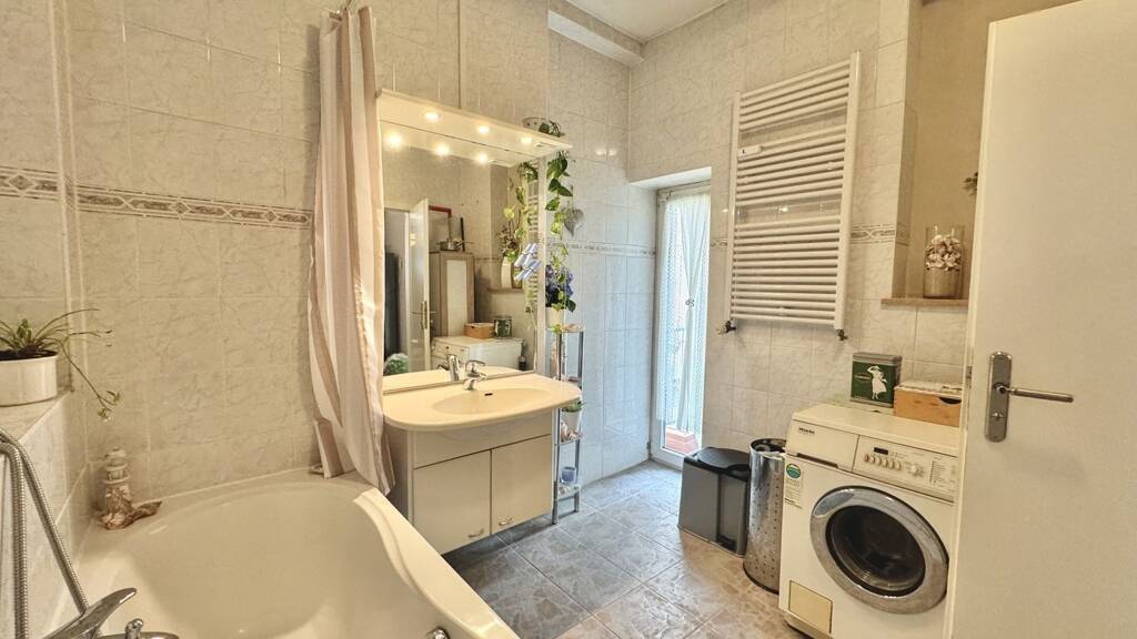 Das Tageslichtbadezimmer mit Badewanne verfügt über einen direkten Zugang zu einem kleinen Balkon, der zu entspannten Momenten im Freien einlädt. Insgesamt überzeugt das Objekt durch seine gelungene Kombination aus klassischer Substanz, stilvoller Modernisierung und harmonischer Wohnqualität.