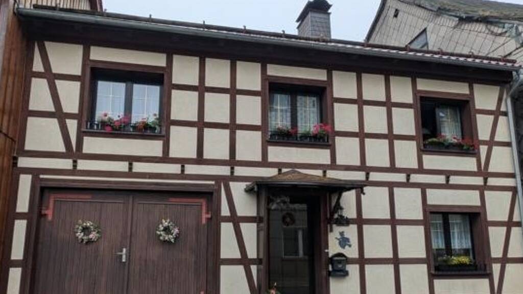 Stell dir ein bezauberndes Fachwerkhaus vor, das in einer ruhigen, aber zentralen Lage steht. Die charakteristische Fachwerkfassade mit ihren sichtbaren Holzbalken und dem weißen Putz verleiht dem Haus einen charmanten, traditionellen Charakter.