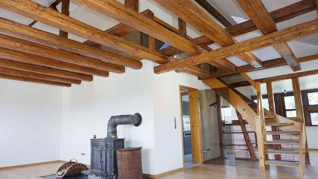 Überaus geräumig geschnitten beginnt die Wohnungsführung im 2. Obergeschoss. Die Eingangsdiele nimmt Sie in Empfang und bietet einigen Stauraum für Ihre Garderobe und Schuhschränke. Ein Highlight ist ohne Frage der große Wohn-/Essbereich mit toll erhaltenem Sichtgebälk und Blick auf die Galerieebene. An kalten Tagen machen Sie es sich vor dem Kaminofen gemütlich und für warme Tage schließt sich dem Essbereich ein XXL-Sonnenbalkon mit perfekter Süd-Westausrichtung an. Die Küche ist bereits voll möbliert und wird Ihnen während der Mietzeit zur freien Nutzung überlassen! Auf der Galerieebene, welche offen geschnitten ist, können Sie Ihr Homeoffice einrichten, ein Duschbad rundet diese Etage ab. Des Weiteren stehen zwei Schlafräume und ein helles Tagelichtbad mit Badewanne und Dusche zur Verfügung.
