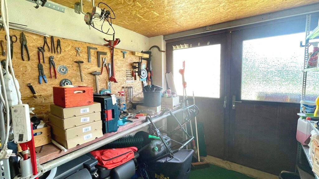 Raumaufteilung Sie betreten das Grundstück von den Stellplätzen vor der Garage kommend direkt über einen Zugang zum Sommergarten. Dieser Bereich wurde zum Spielen, Basteln, gemeinsamen Essen in den Sommermonaten aber auch als Abstellmöglichkeit für Pflanzen etc. im Winter genutzt. Von hier aus erreichen Sie das Grundstück, die Garage und das Wohnhaus sowie insbesondere die unmittelbar angrenzende Küche. Diese hat ebenfalls Platz für einen großen Esstisch. Von der Küche aus gelangen Sie über den auch erst in 2025 erneuerten Flurbereich, ins Wohnzimmer und das untere Badezimmer.