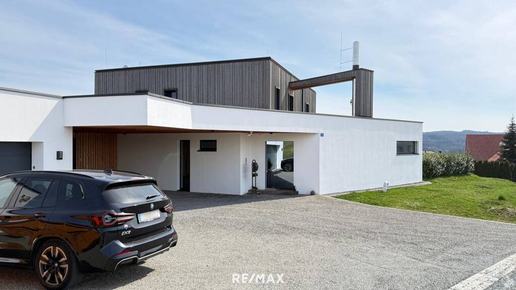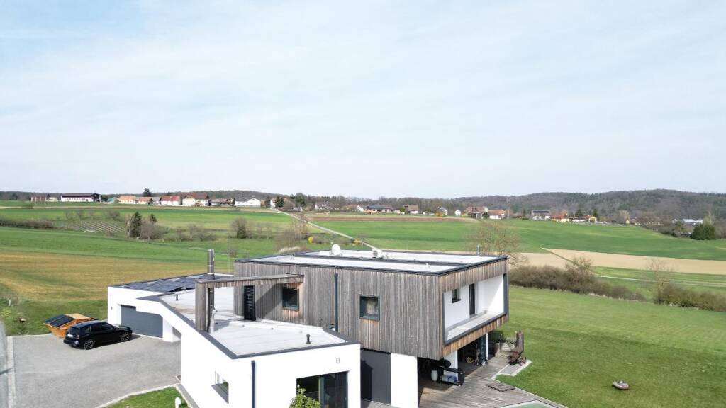 Die in ökologischer Holzriegelbauweise errichtete Liegenschaft verfügt über eine Wohnfläche von ca. 250 m² sowie eine Gesamtnutzfläche von ca. 320 m² und überzeugt durch eine durchdachte Raumaufteilung sowie lichtdurchflutete Wohnbereiche.