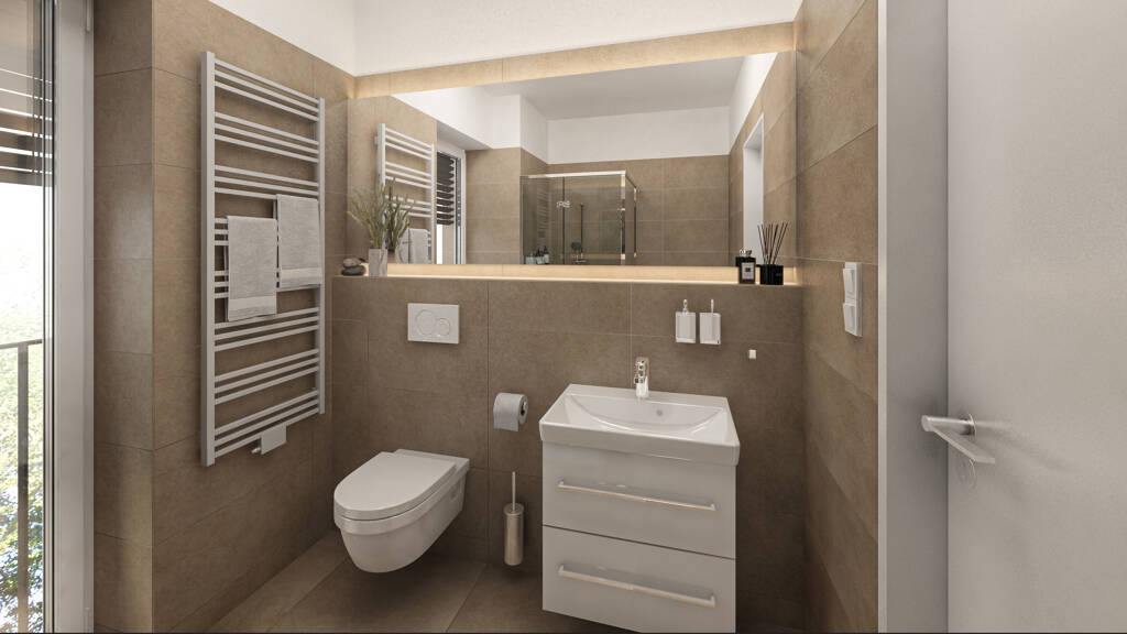 Die geschmackvolle Innenausstattung mit großformatigen Fließen, einer modernen Badgestaltung und Echtholz Parkett lässt keine Wünsche offen. Die Wohnungen verfügen außerdem über eine gehobene und moderne Technik, wie Fußbodenheizung, hochwertige Sanitärobjekte, Kunststofffenster mit Isolierverglasung und innovativer Kommunikationstechnik für TV, Telefonie und Internet.