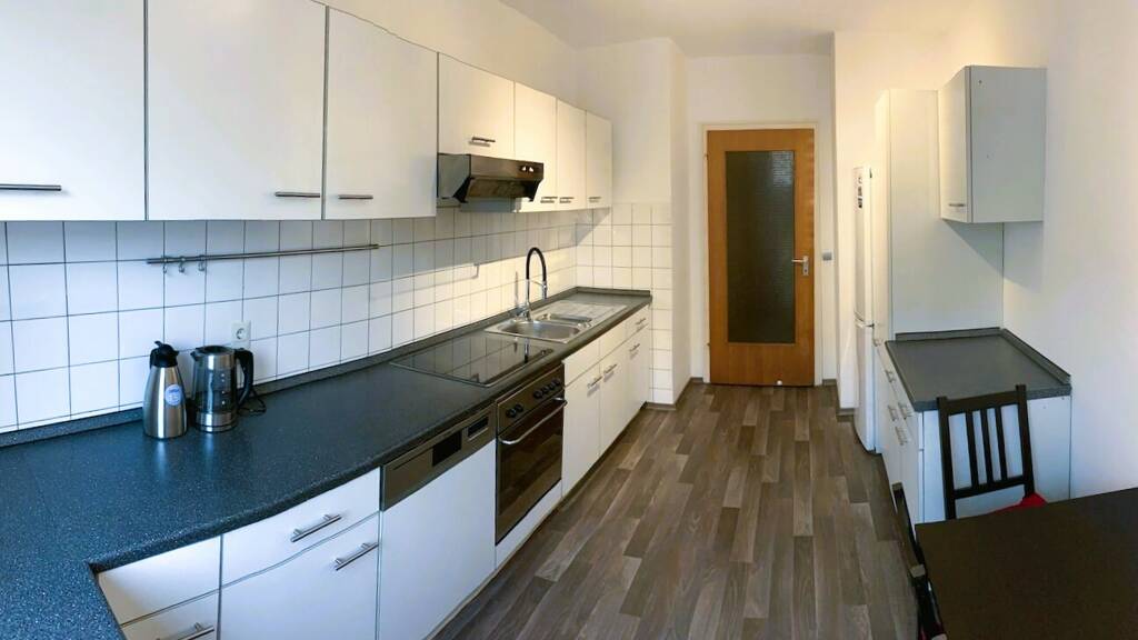 Eine voll ausgestattete Einbauküche, ein Außenstellplatz sowie ein separates Kellerabteil runden das Angebot ab.