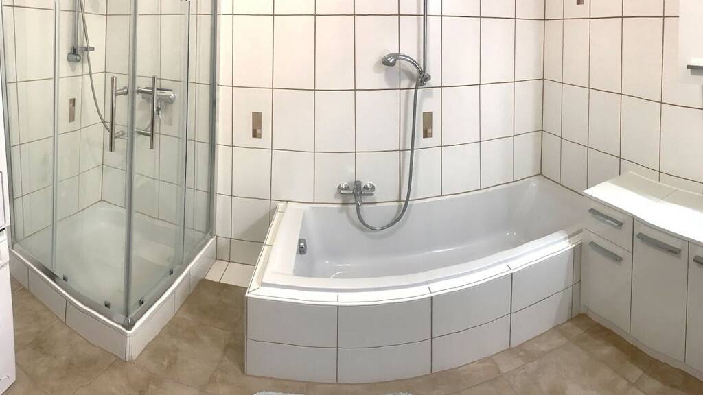 - Badezimmer: Badewanne, Dusche, Waschmaschinenanschluss