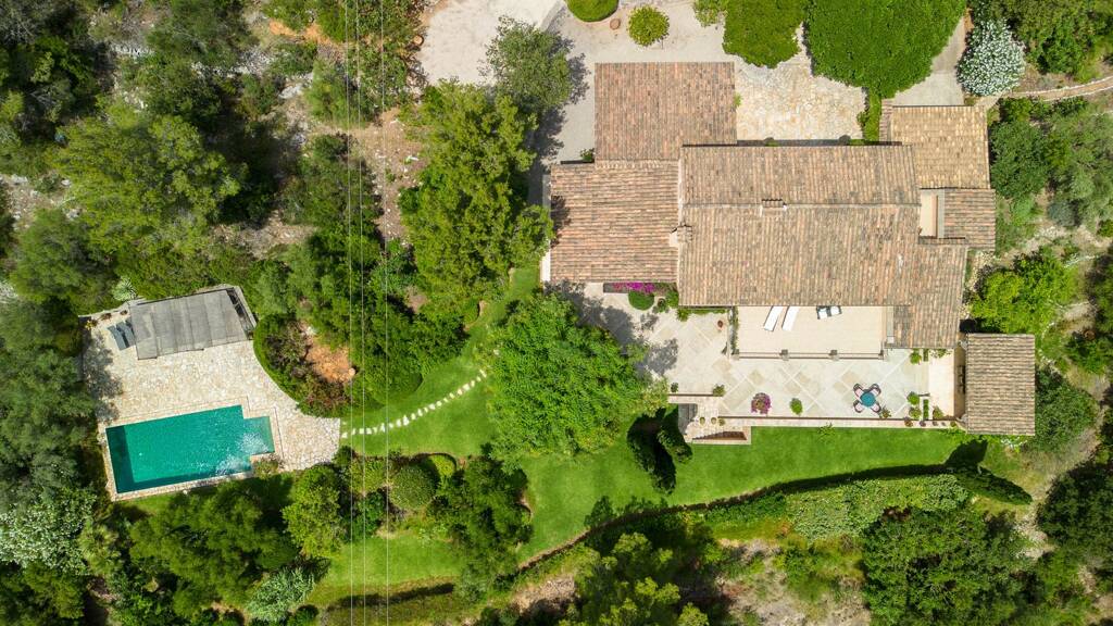The living spaces extend to the outdoors, where a number of exceptional features can be found. The covered terrace overlooks the beautifully landscaped gardens, the private swimming pool provides a cool respite on hot summer days, and the sun-drenched terraces are the perfect location to soak up the Mediterranean sun. Those who appreciate culinary delicacies will find the barbecue area ideal for hosting family gatherings. The mature garden features an assortment of fruit trees and Mediterranean trees that lend a touch of nature's bounty to the environment.